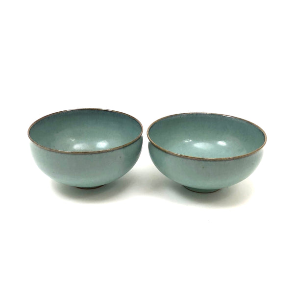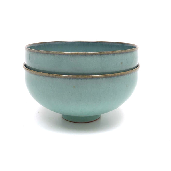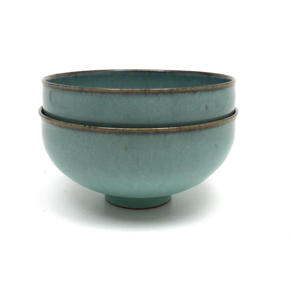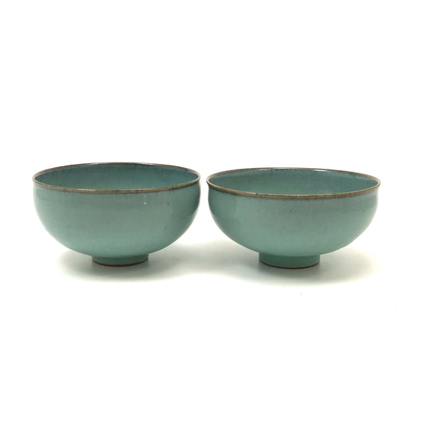 Edwin and Mary Scheier Elegant Pair of Footed Pale Blue Bowls, c. 1950s
