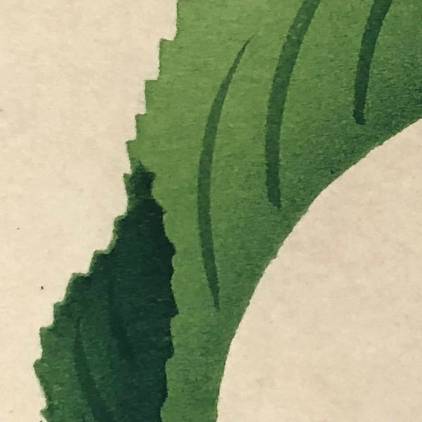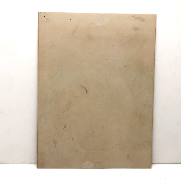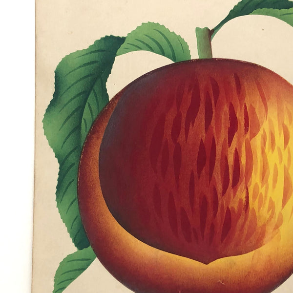 One of three super saturated, strongly graphic old theorem watercolors of fruit today, purchased together in Pennsylvania--and making me think about the kinship between theorems (made using stencils, and I believe with glass straws used for blowing the base level of watercolor paint) and airbrushed designs. Surely all done by one person, and a faint penciled number at the corner of each suggests they were likely part of a larger series (one sees similar numbering on antique watercolor of flowers, birds, butterflies, where a series of different species were represented.) A very lush peach I'd say, with a very strong visual punch--and nice brushstroked detailing, too.