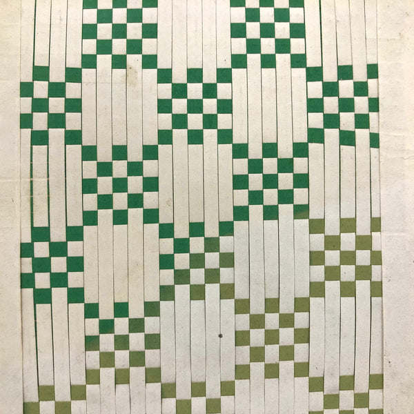 A couple more old Froebel Kindergarten paper weavings today, as I never tire of them, and can never get enough--and what a gorgeous field of green checkerboards (graduating from a darker green to a sort of celadon) against white here! Super graphic and very elegant. Earlyish 20th c. I believe and quite finely done, likely by a teacher.