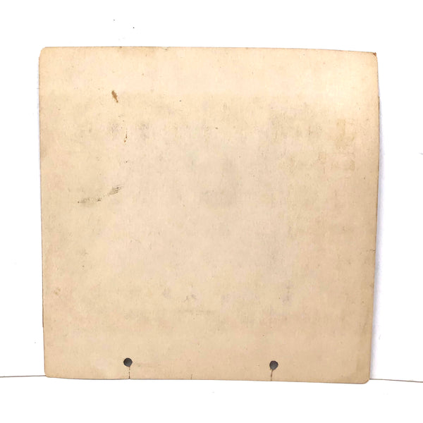 Paper: 7" x 7". Weaving: 7" x 5". A bit of scattered spotting along the top edge (first photo) and one or two minor tears.