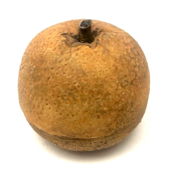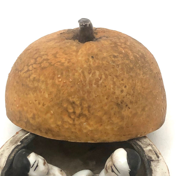 How to resist? I've found antique Chinese and Japanese erotic porcelain figures of a similar nature out there, mostly sold at auction, but I haven't found anther couple housed inside an orange, and a terrific orange at that! Early 20th century, and I think Chinese, though I've found similar couples listed as both Chinese and Japanese. Pretty great modeling of their bodies, with just the right hand-painted details! A great one to lend another dimension to a display of a few beautiful pieces of stone fruit! Fabulous.