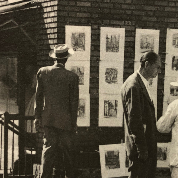 I purchased this one from a favorite dealer in the Hudson River Valley, with lots of bins of drawings and photos and ephemera to dig through. I love it for feeling like a whole world on a corner, and iconic of a Manhattan long gone. (The Eskimo Ice cart also makes me think of David Hammons's brilliant snowballs for sale street performance of 1983.) A handwritten note on the reverse of the photo reads "Greenwich Village, 1970s"--and looking closely one can see "Three Steps Down" in the window next to the seated man at right, which was the name of a cafeteria for artists and NYU students on West 8th St. I believe, which later became a shoe store...