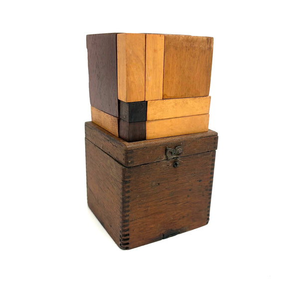 I've found that the more times I shop Brimfield, the more I've become inclined to almost exclusively purchase little things that will easily fit in my bag (I seem to have gotten quite lazy about heavy schlepping)--and particularly small things delivering unexpected delights that are easily overlooked by others who are moving faster across the fields. Like this handmade boxed puzzle cube--which evinces both Froebel's kindergarten "Gifts" of boxed blocks and also a three dimensional Mondrian painting in its construction (and it should come as no great surprise that Mondrian's mother was a kindergarten teacher!) Very modernist in its modularity, but also very handmade and hands-on; feels almost like a prototype and also like a bridge between the 19th and 20th centuries. I really love this, which can be arranged in a few different ways to make the cube, but which requires some brain power/trial and error!