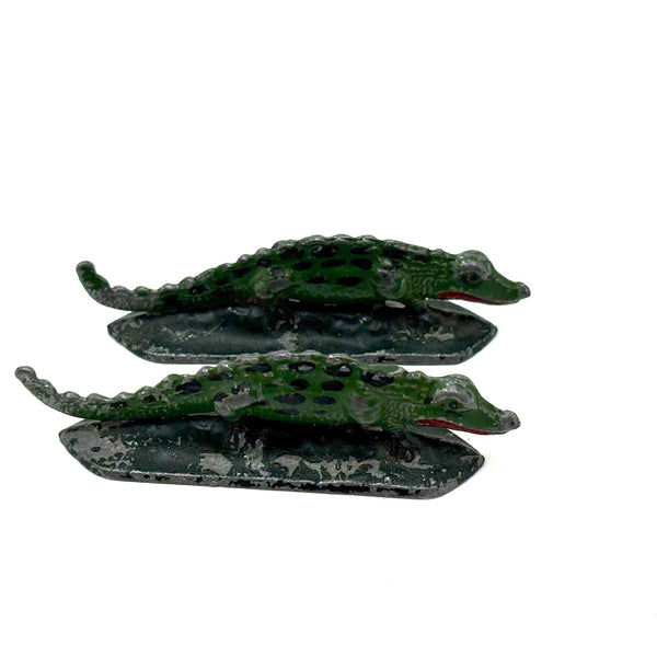Each 2 13/16" l x 3/4" t. Sold as a pair. Very good condition, with some general minor paint loss, as there should be, all to the good. Price s for the pair.