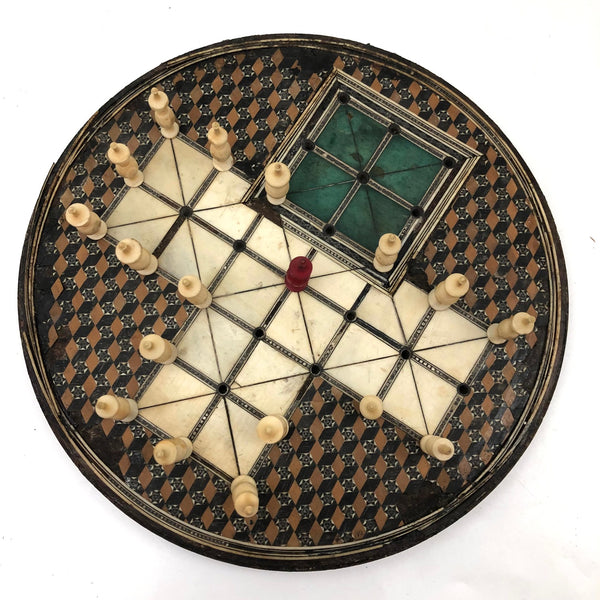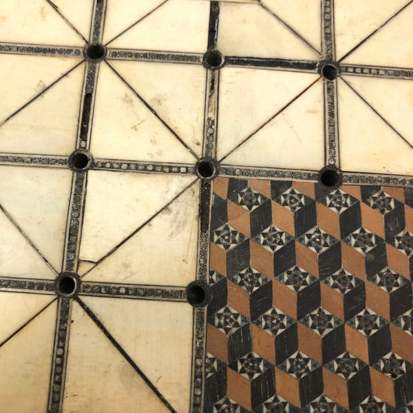 Exquisite 19th C. Inlaid Bone and Marquetry Fox and Geese Game Board