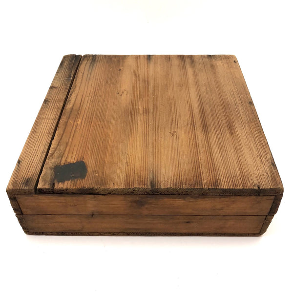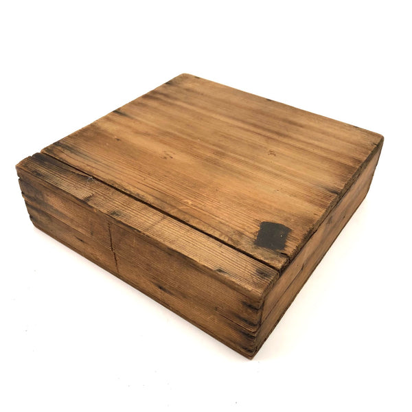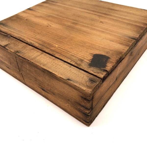 Box measures 8 7/8" x 8 3/4" x 2 3/4". Board is 7 5/8" d and stands 1 1/16" on its feet. Some losses around the perimeter as documented, overall good condition and stable.