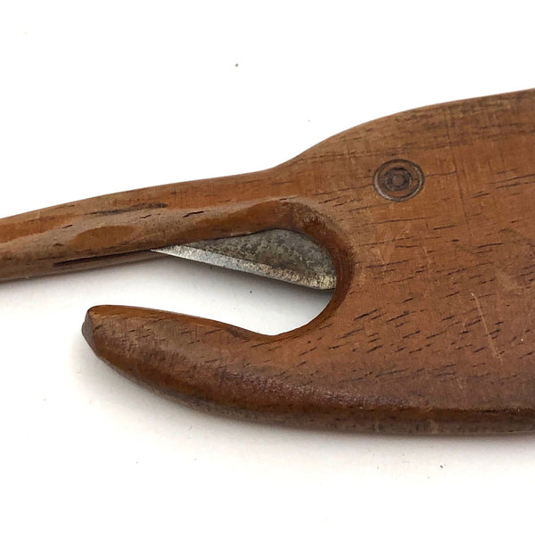 I'm completely charmed by this one, which was quite finely done, and is a very useful one too, with the long thin sword perfect for slipping through the top of a sealed envelope, and the blade inside of its mouth cutting the paper as it goes. Great in the hand and really quite a satisfying thing, with lots of years on it and a great patina.
