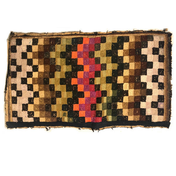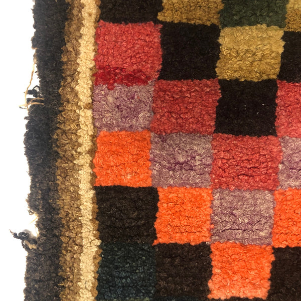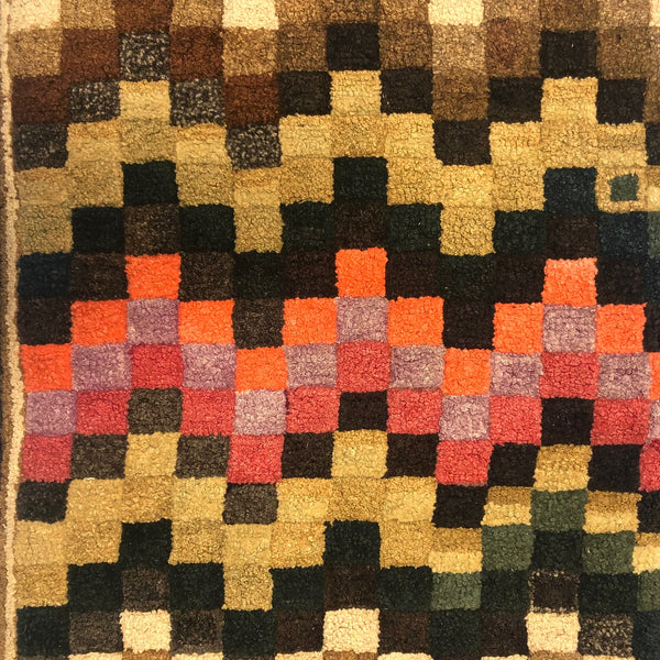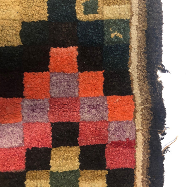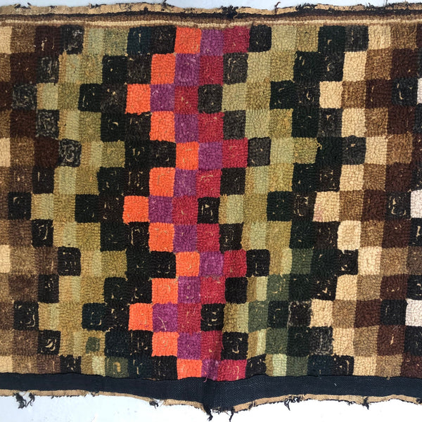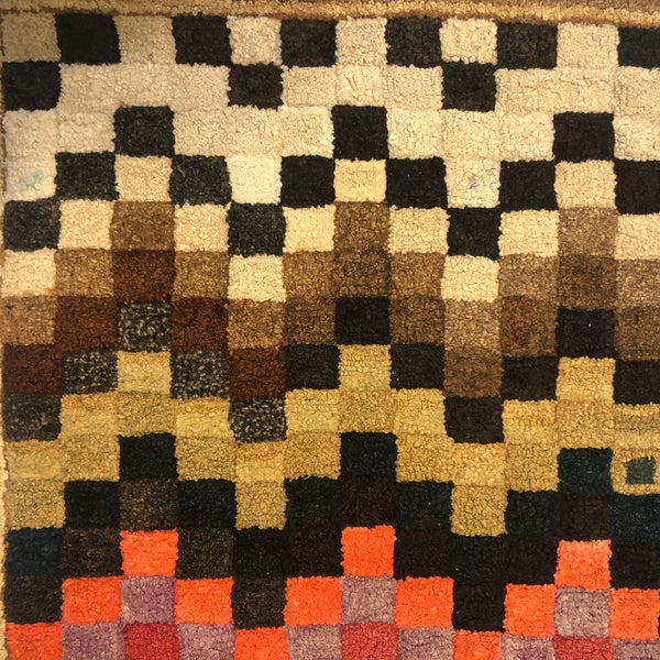 Fabulous Old Checkerboard Folk Art Hooked Rug, 29 x 48 Inches
