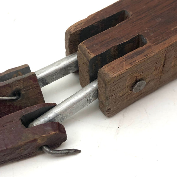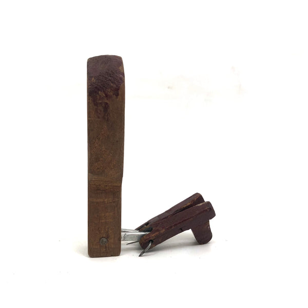 6 3/4” x 2 1/8” x 3/4” and in very good , very sound condition, with great wear and lots of age to the wood. He will sit up on his own.
