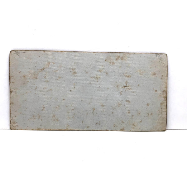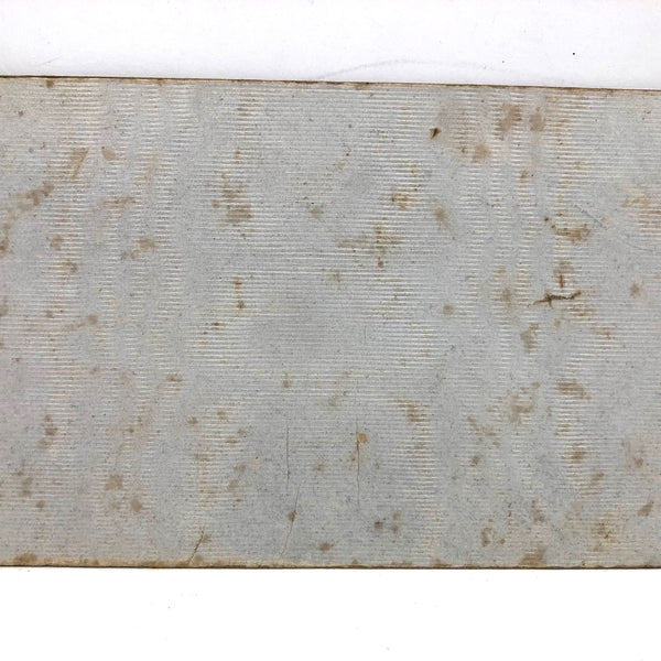 6 7/6 x 3 7/16 and in good condition, with a little toning/staining along the edges and visible on the back of the card.