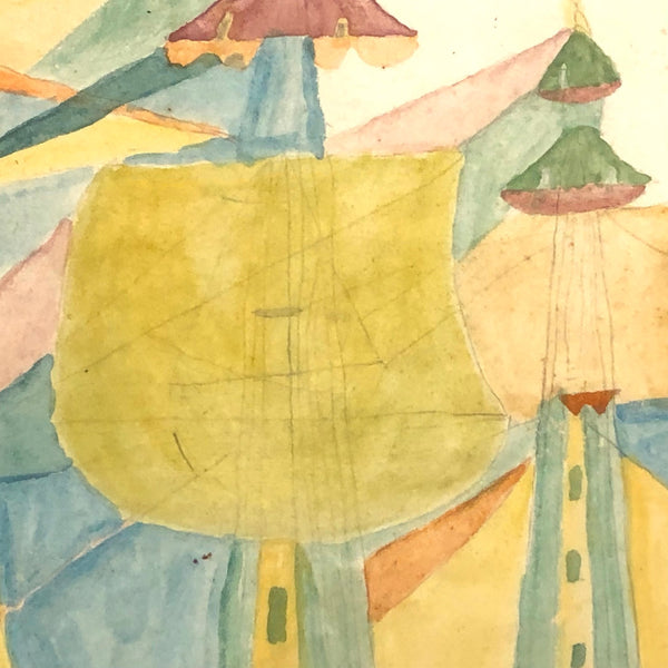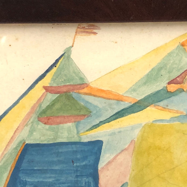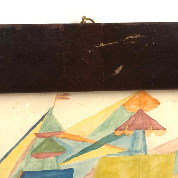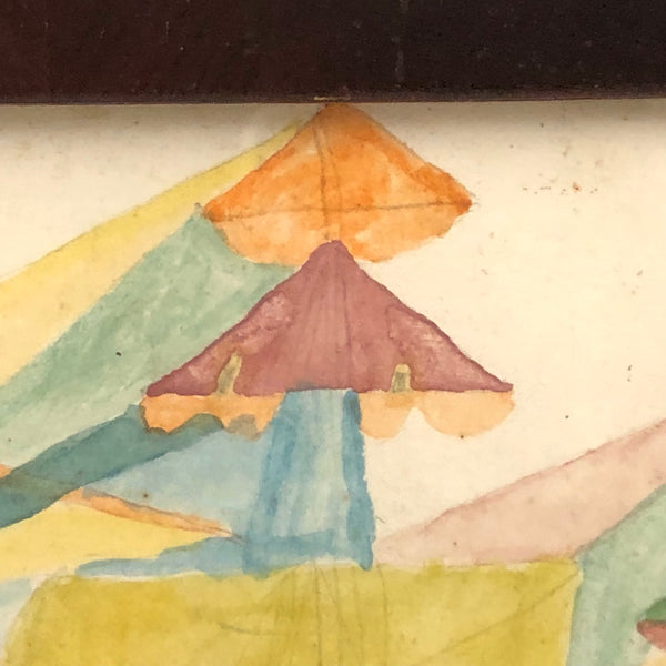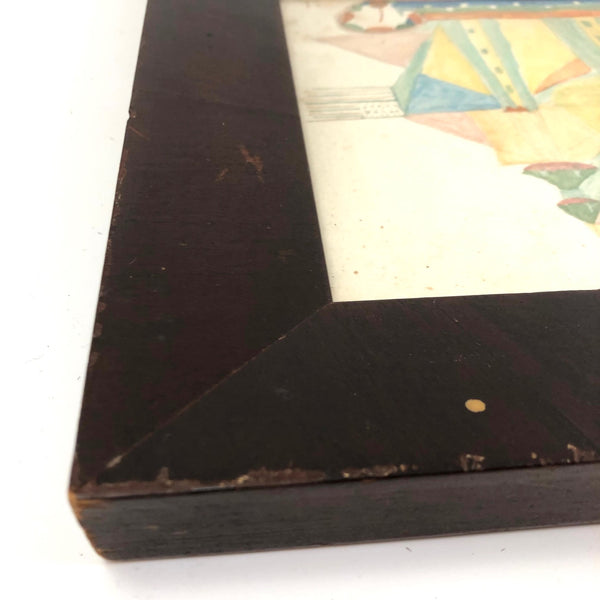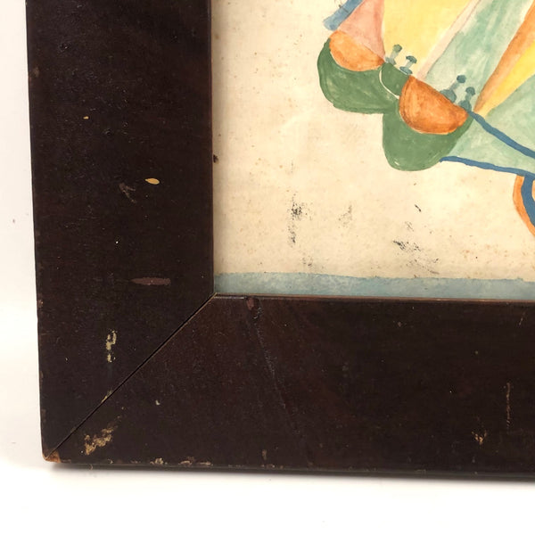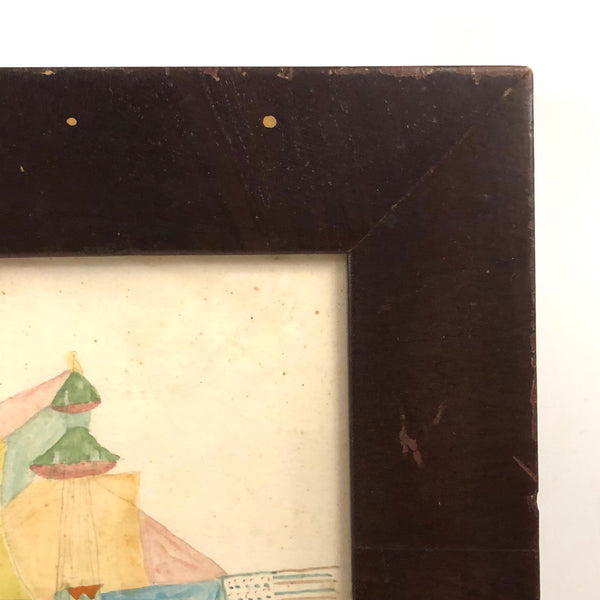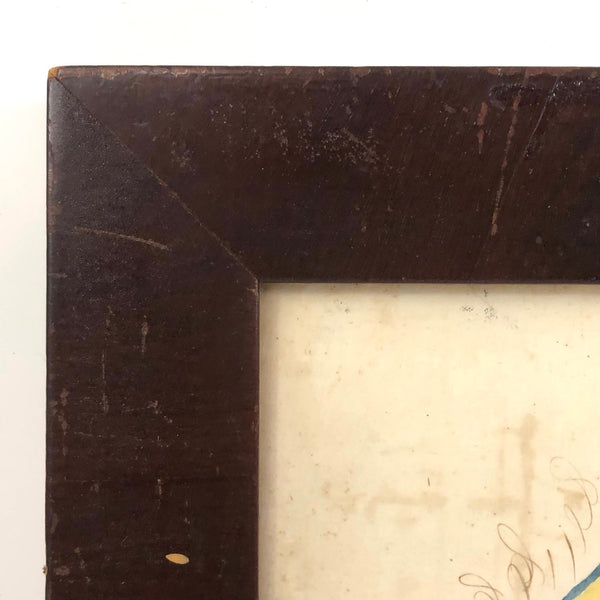 Framed, as found (and I do believe it has lived in this frame for quite a long time): 15 3/8" x 10 5/8". Sight" 11 7/8" x 7 1/8". Watercolor is in very good condition. Frame shows some surface wear, as documented--I don't think detracting, and it is sturdy and sound, with a hanging loop at top center.