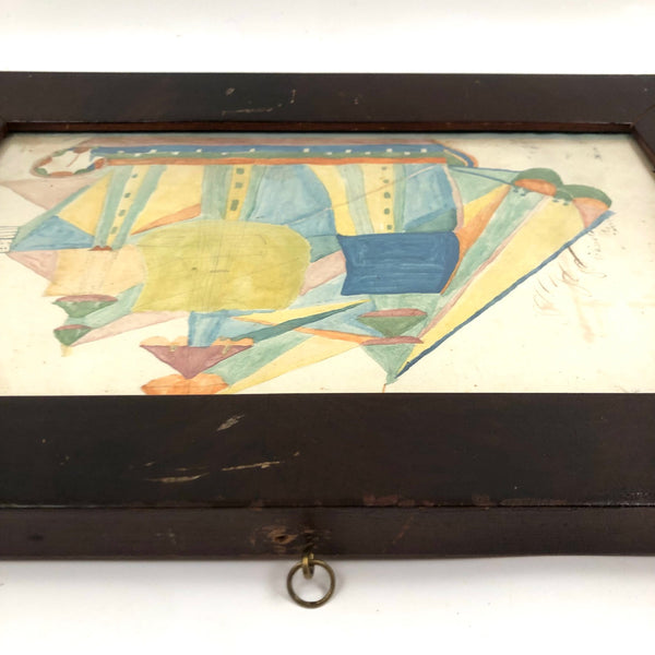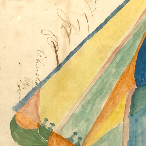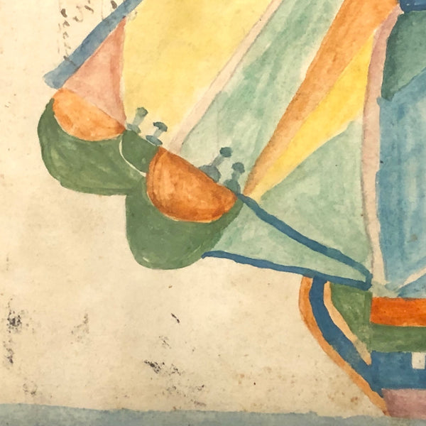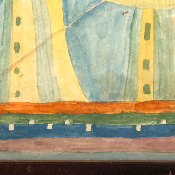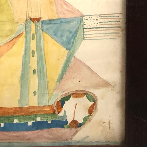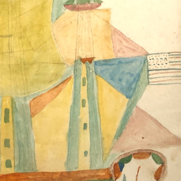 When I spotted this this old watercolor at Brimfield this past week,-earlier than later 19th c. I believe, on wove, and I think likely once held in a school ledger— I completely swooned and immediately jumped on it; it’s everything I love and more! Not just a fabulous naive early watercolor of a sailing ship, and waving not one but two American flags, it's the most marvelously colorful and exuberant rendering of one I’ve certainly ever seen, veering almost into abstraction, with it feeling as if the form of the ship was largely just an excuse for a completely joyful, whimsical interplay of shapes and colors. To my eye, pure happiness, so lovely and singular. And in a period frame to boot.
