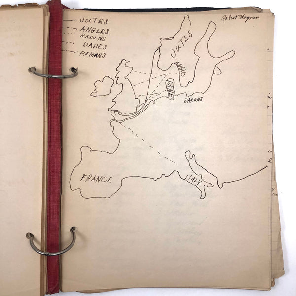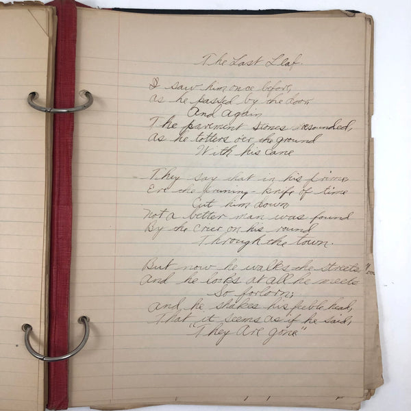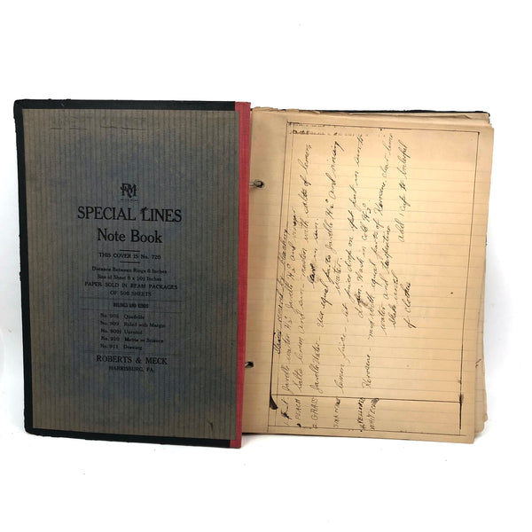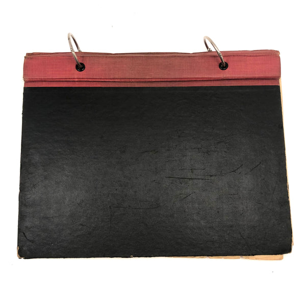 10 7/8" X 8 3/4", 40+ pages, three ring, hand-cover binder from which pages could be easily removed. Most pages filled on one side only. All in generally good condition and very sweet. Found in Pennsylvania.