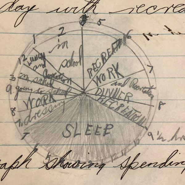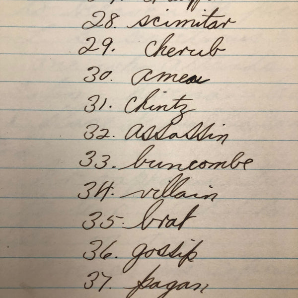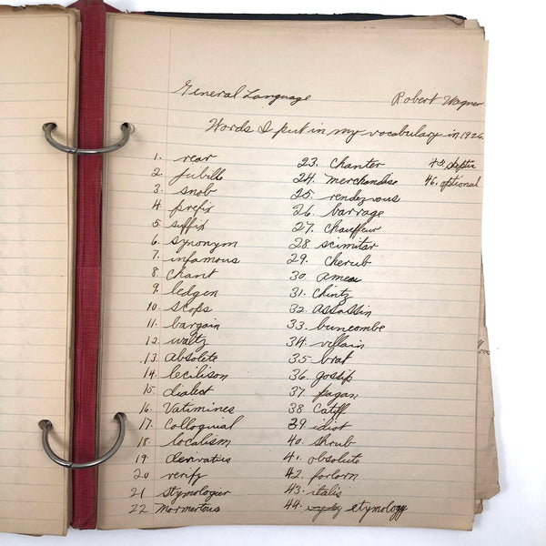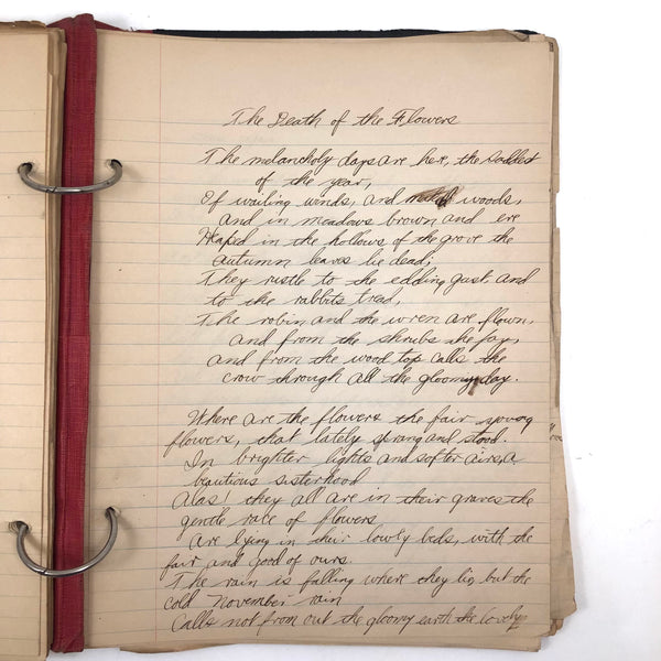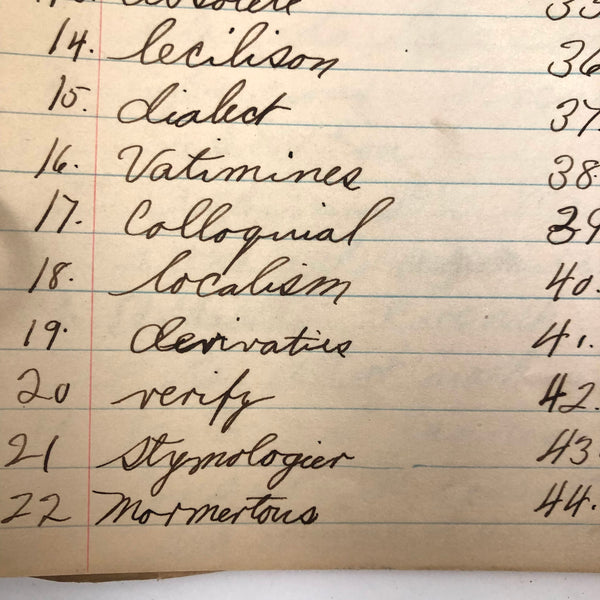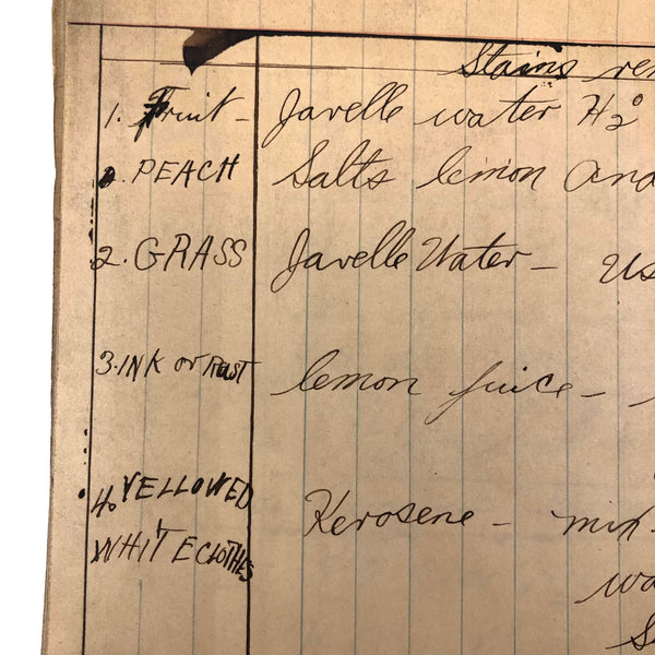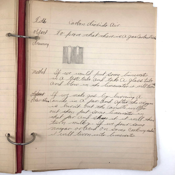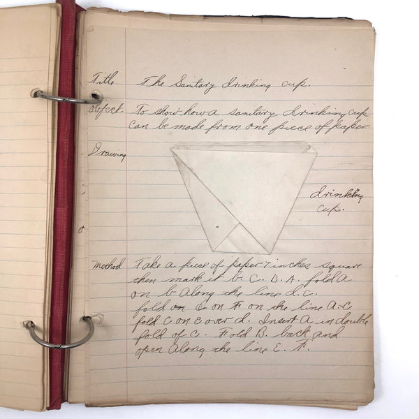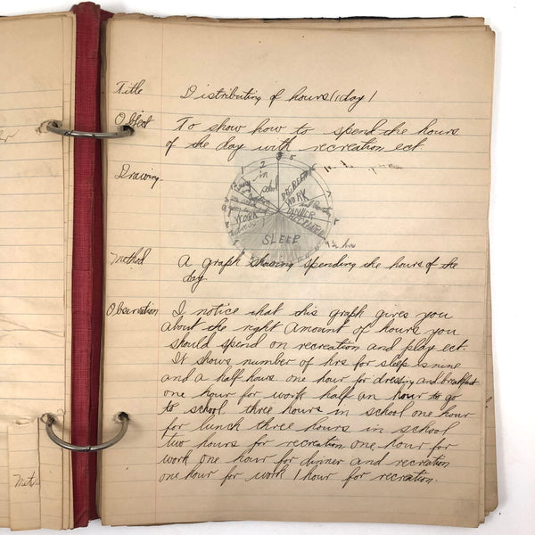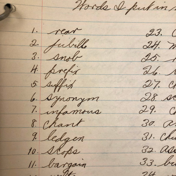 Things like this old school binder full of notes give me great joy--so much poetry to some of these pages when regarded as stand alone things now, and these also adding up to something of a portrait of 8th grade in 1926. Multiple subjects covered here--the majority of pages science related to various extents (some chemistry, some more like home ec-- and then some English language (including a few great lists of words learned this year) and some pages of poetry, too. My very favorite (pictured first) charts a handful of common insects, including "where to find them" and "how to rid them." Other pages detail how to remove various sorts of stains, how to test for the presence of pure wood, cotton, or linen, and how to make a folded paper drinking cup. A few diagrams relating to human organs, science experiments, and organizing time in the day, too, plus lots of other delights.