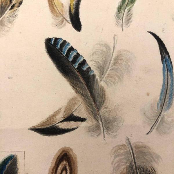 A stunner of a small watercolor, making these plumes feel truly as light feathers. Gorgeous. And I love how these feathers read both as stand ins from the diverse flock of birds from which they were plucked, and as a field of language which they might be used to pen. Beautifully detailed, terrific color, and as wispy as can be--indeed, it rather makes one want to speak in whispers in front of it!