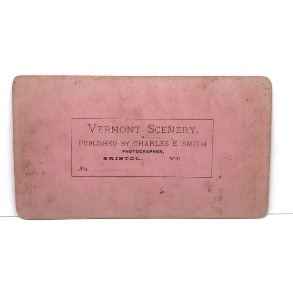 7" x 3 7/8". Charles E. Smith, Bristol, VT. c. 1880s I believe. Scattered stains and spotting, which just feel atmospherically additive to me. Card lies flat.