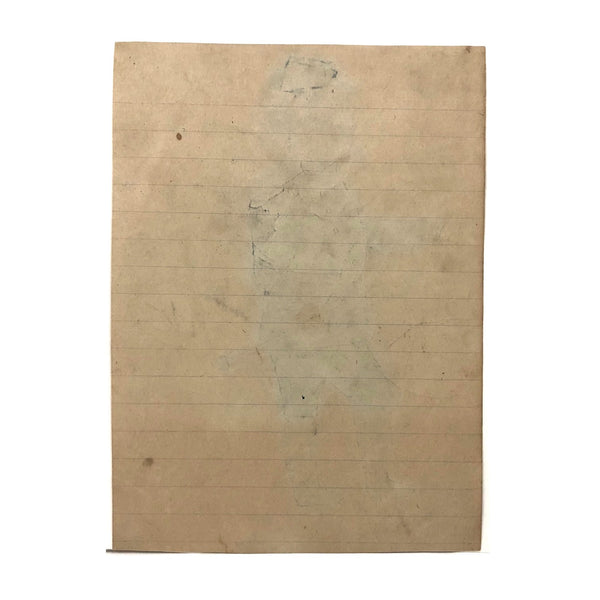 7 1/4 x 5 1/4 and in good condition, graphite and watercolor on lined paper. C. 1910.