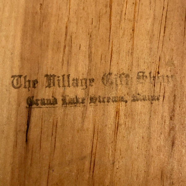 Fyi, Grand Lake Stream is in the northeastern-most part of Maine, named for the stream that flows through the town and and famous for salmon fishery as well as a long, local tradition of hand-built wooden canoes. It seems that The Village Gift Shop, stamped on the back of this plaque, is no more.