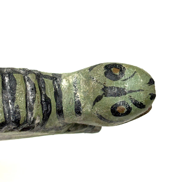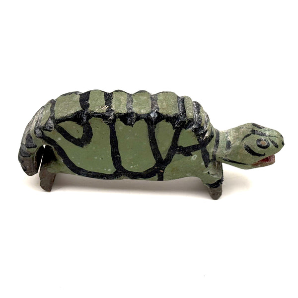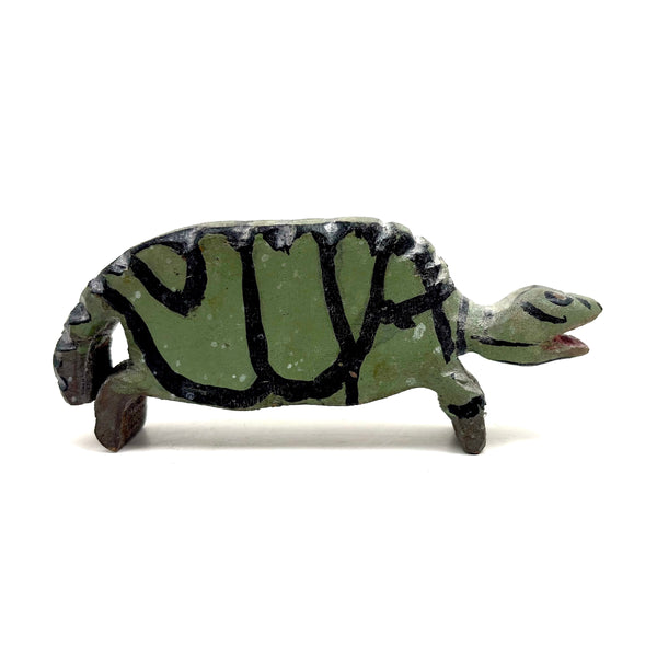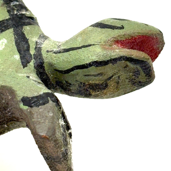 A very excellent turtle, with wonderfully done paint job to emulate a faceted shell, and the notched carving along the ridge of his back the perfect touch. Terrific open mouthed face with red paint inside, too. A total charmer.