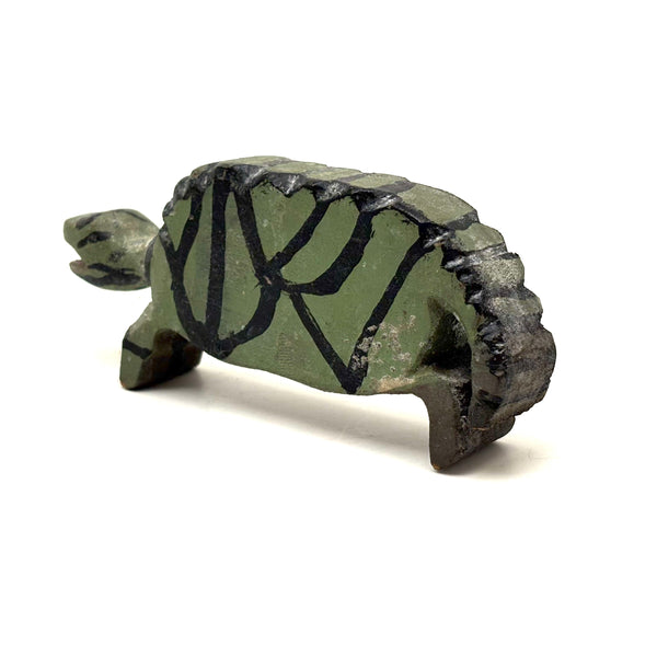 Graphically Excellent and Also Highly Empathetic Green and Black Painted Folk Art Turtle