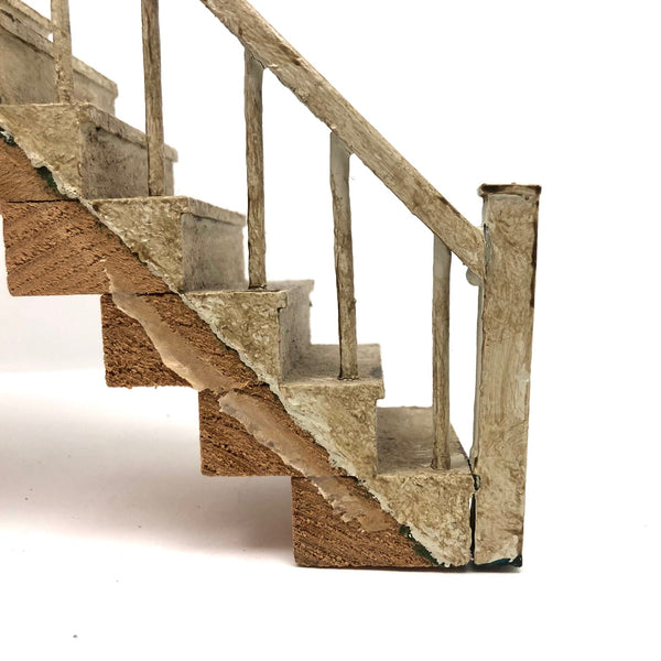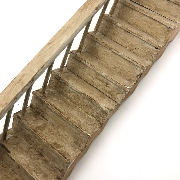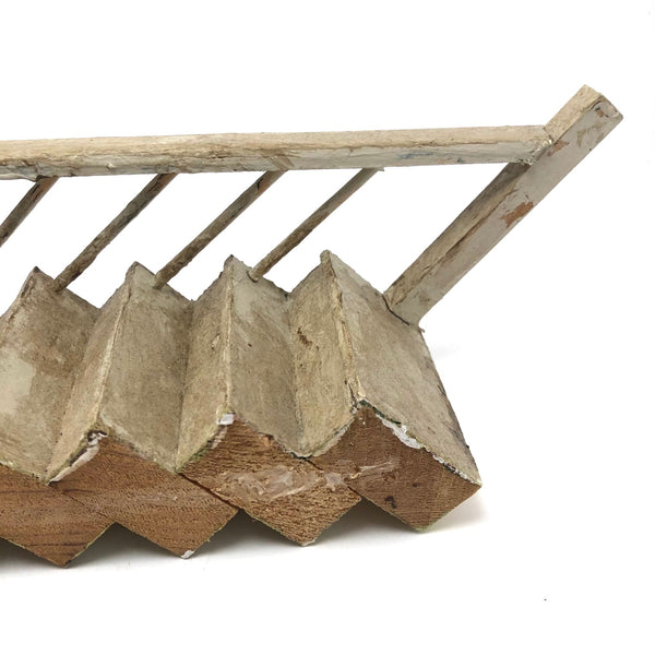So many things one could do with this old handmade dollhouse staircase (and so many tiny things one could arrange upon it!); I like the idea of mounting it with the top stair flush to the wall, such that it looks like a staircase forever leading to nowhere. Fabulous old white paint, which now reads as cream, and if leaned against the wall it will stand up (and a stick the right height under one stair works great to shore it up.) It also makes a great sculptural object just laid horizontally. Yum.