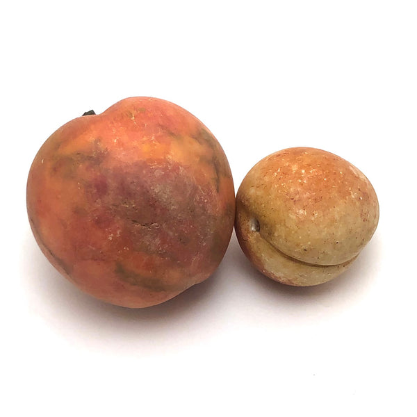 Peach: approx 2 3/4" t x 2 3/4" in diameter. Apricot: 2" tall and 2" in diameter.