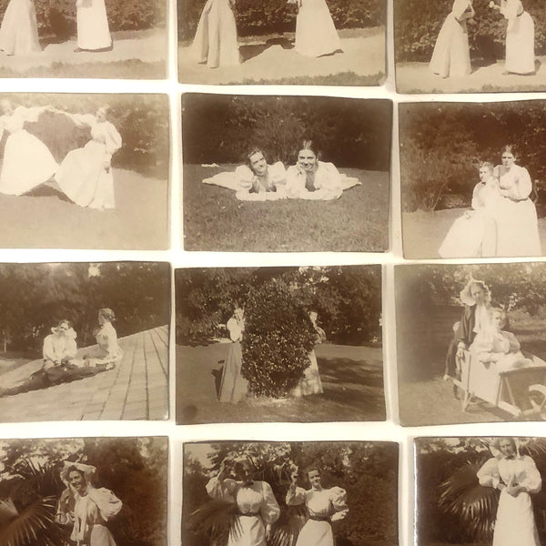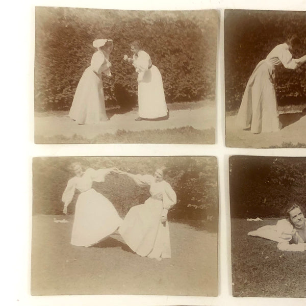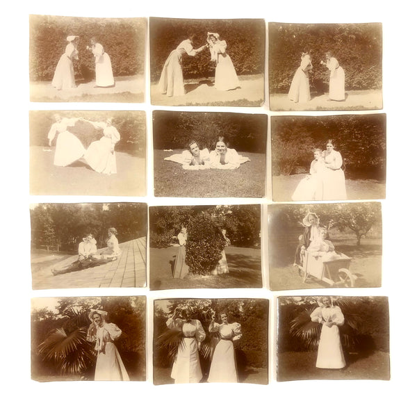 What I think is great about these is how they immediately transport one--or me at least--to an afternoon frolicking around in the garden more than a hundred years ago. And together they read like film stills, which one might arrange in various sequences. I also like that these young women seem free and having a really great time! And miniature photos are really cute!