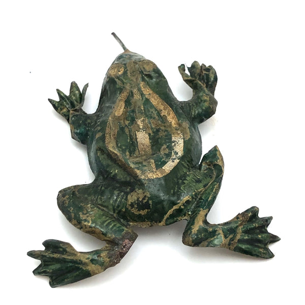 Funny little things, very charming, even, or perhaps all the more so, for being a bit squished. I believe these were penny toys of sorts, and I believe they've got at least 100 years on them. I found them together, and think they've very good as a group, with the rich green and gold of the frog a perfect complement to the mellower gold of the turtles. Pretty fabulous.