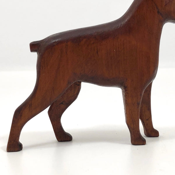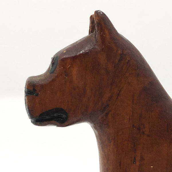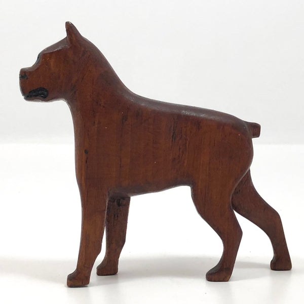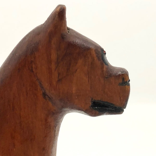 A terrific vintage hand-carved wooden boxer, with wonderful little pointy ears and a really charming face detailed with black paint on the eyes, snout and mouth. I'd keep this guy close at hand as a constant reminder to stay alert, and go after it!