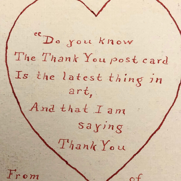 This great antique postcard makes me think the thank you post card should become the latest thing once again! Just lovely. Hand-done in rich red ink on an unmarked back, and if it was ever sent it must have been enclosed in an envelope.