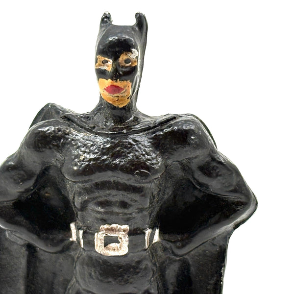 Couldn't resist this one--which, with these lush hand-painted very red lips, looks like a batman altered to look more like a dominatrix of a batwoman to me! I can't find an exact match out there for the die-cast metal figurine itself, which is heavy for its size; I think maybe a bootleg. Whatever the case, feels like a powerful icon to me!
