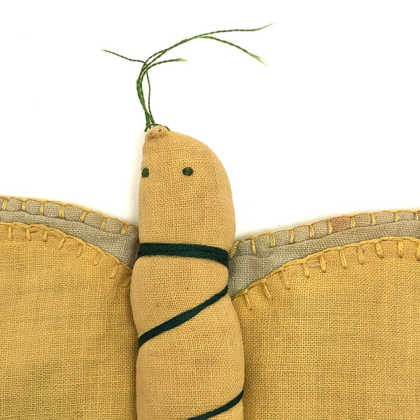 Just a happy thing, which has many years life in it yet as a potholder, though I might just hang it on the wall. I especially love the use of green thread to wrap its body, detail eyes, and give it floppy antenna!