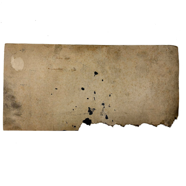 14 1/8" x 6 7/8" Plenty of wear and I presume an animal chewing away to the cardboard as evident--very much to the good. Sound and stable, ink on cardboard.