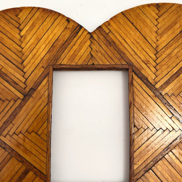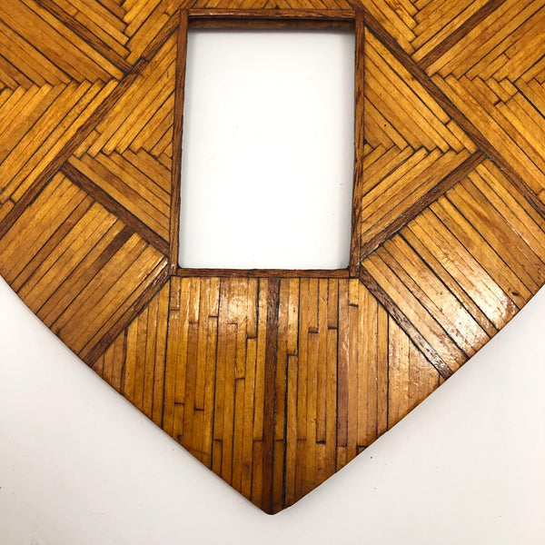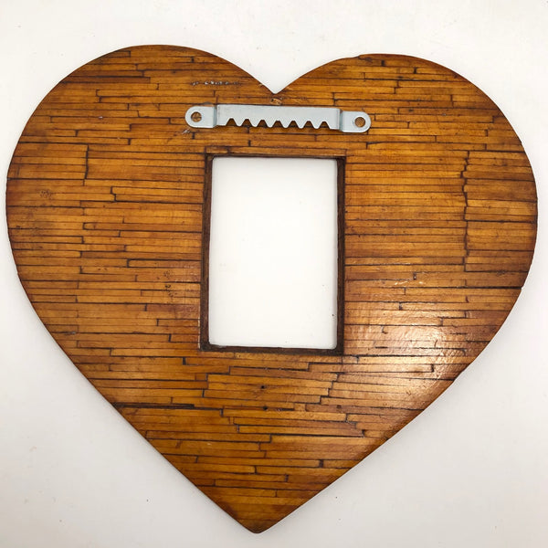 I remain perpetually on the hunt for great tramp art pieces, and have a particular penchant for those made of matches, though find them quite rarely. I was thrilled then to find this super sweet heart-shaped frame, especially as I’ve never seen one like it before. it’s got a great, even varnish on it and is in perfect condition, and I just love how completely straight-forward and perfectly resolved it is. There is no evidence that there was ever a small pane of glass or mirror at the center, though there is a recess to lay one in if desired. I kind of like the directness of just taping a photo of one’s sweetheart to the back, or embracing the void and hanging it just as is.