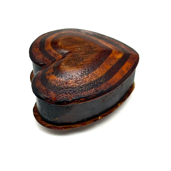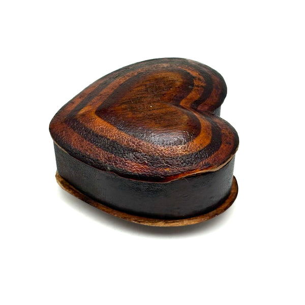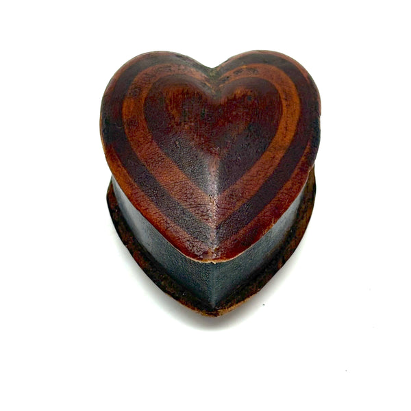 2 1/8" x 1 3/4" x 1 3/8". Light edge wear and a tiny loss to the far right edge of the bottom facing heart as documented.