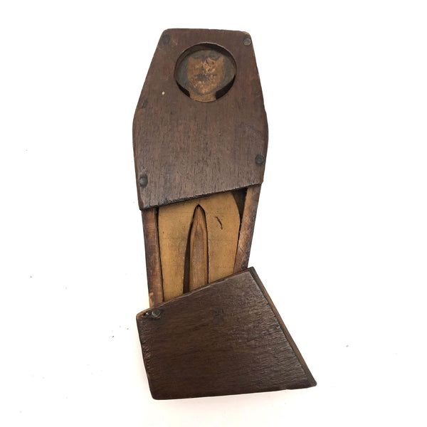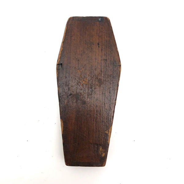 Folk Art Figure in Coffin with Hand-drawn Face and Surprise Inside