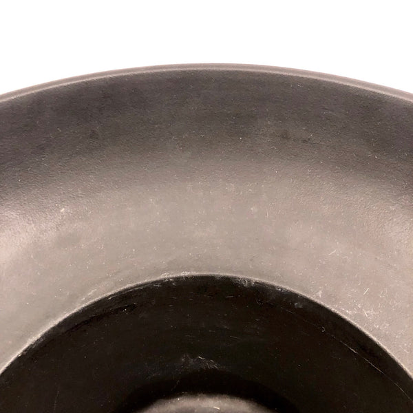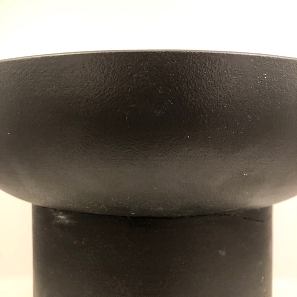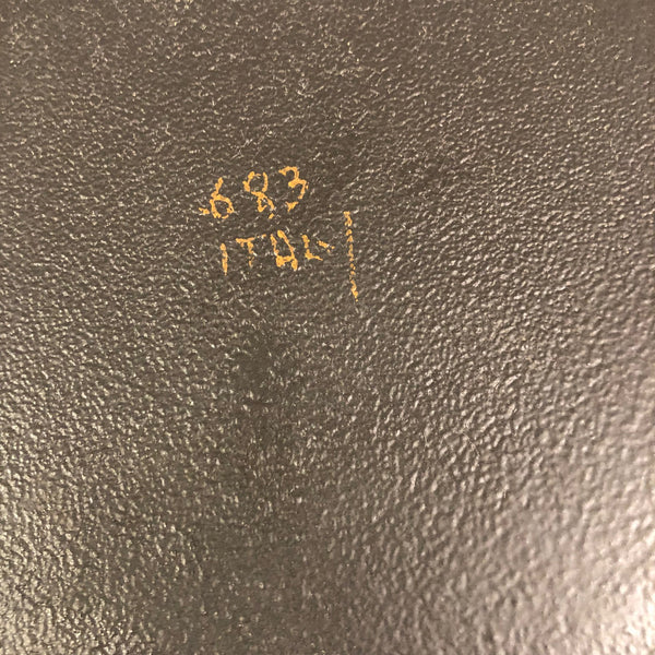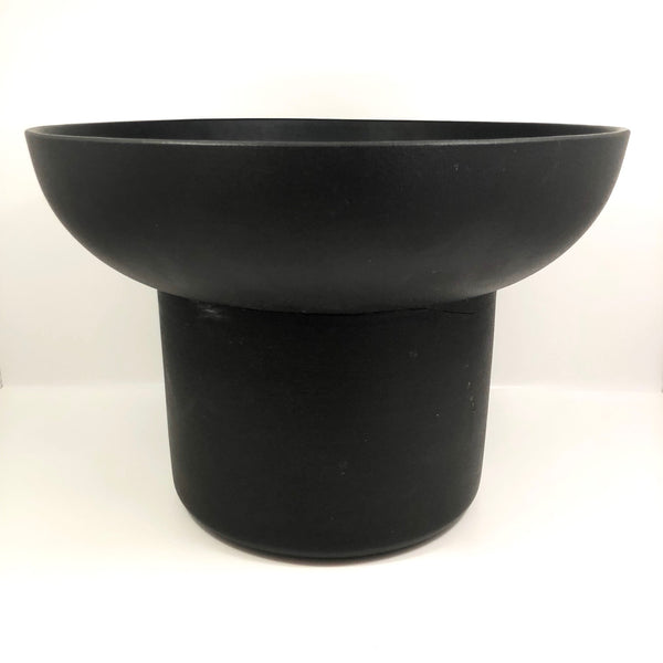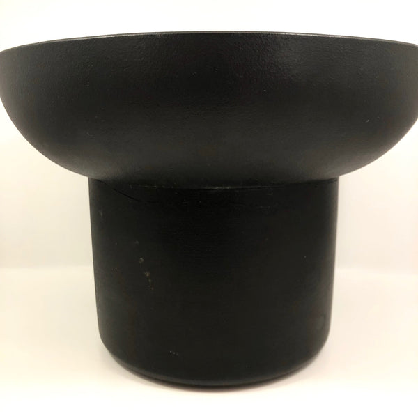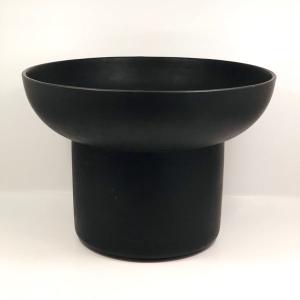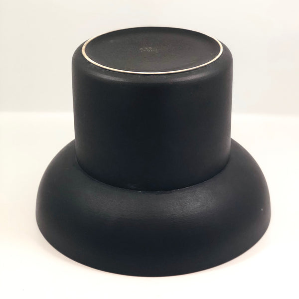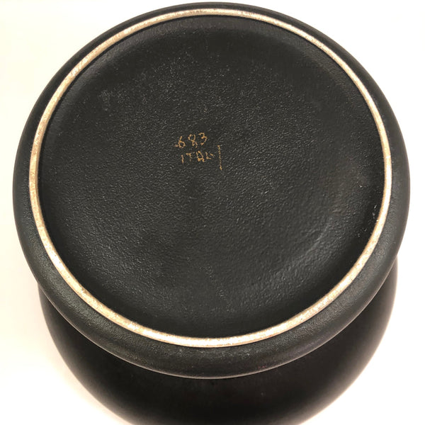 This planter has about the most beautiful form I can imagine, with wide bowl rising gracefully from cylindrical body, making for a truly stunning silhouette. Glazed matte black, it bears a strong resemblance to Californian Architectural Pottery pieces from the 1950s and 1960s, and also a fair resemblance to some pieces designed by Ettore Sottsass for Bitossi, but I have not found its exact match. It is signed 683 Italy in yellow-orange on the bottom.