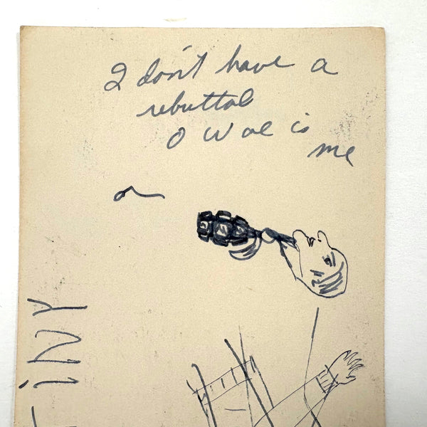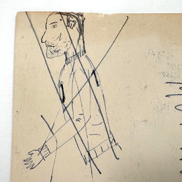 5" x 3", ink on card, good condition, with a small stain to lower left corner.