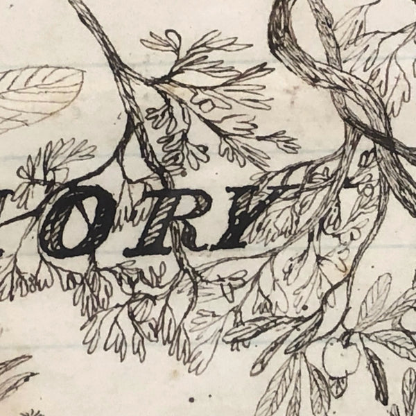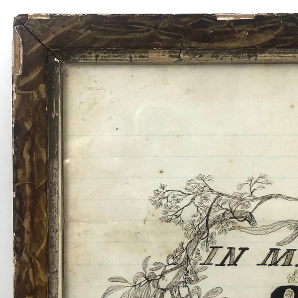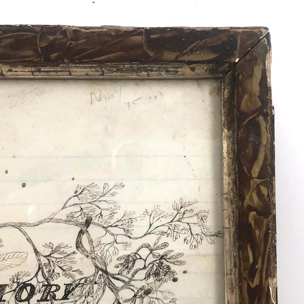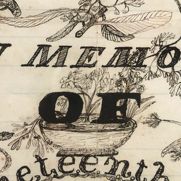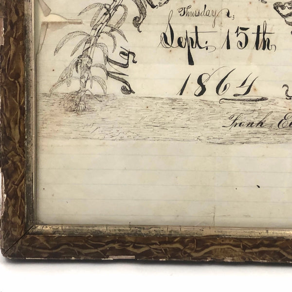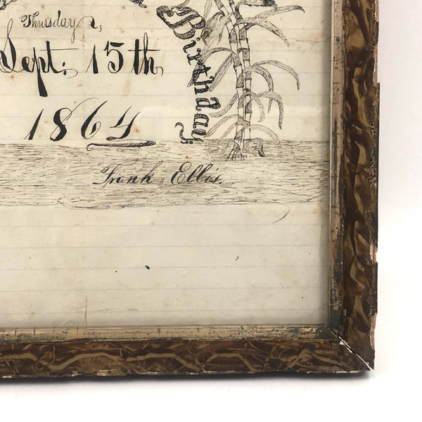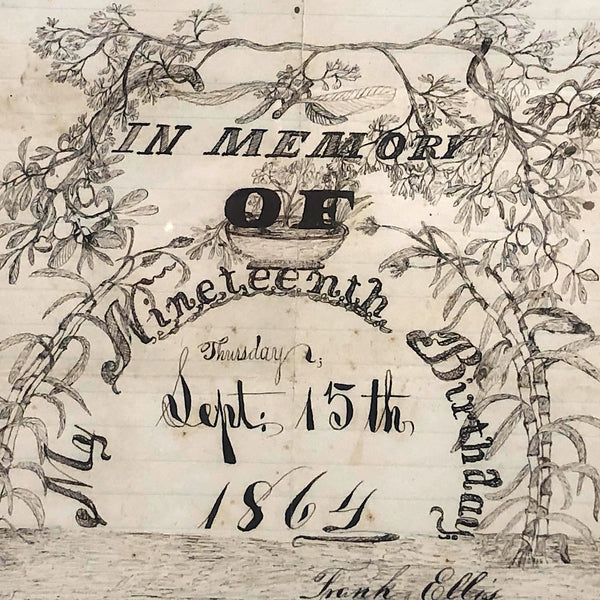 In Memory of My 19th Birthday, 1864, Ink Drawing in Period Frame