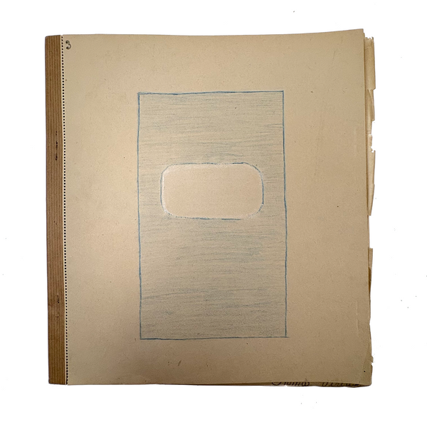 8 3/8" x 7 5/8". 16 pages of drawings, front sides only. Perforated notebook--many of the pages are already loose or easily pulled out cleanly.  All in very good condition.
