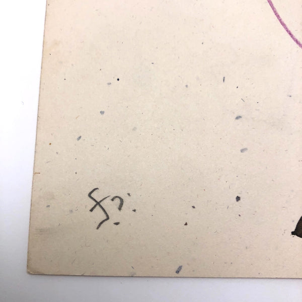 8 1/2" x 11" and in very good condition. Titled at lower left, signed at lower right. There is a second signed drawing on the back as well!