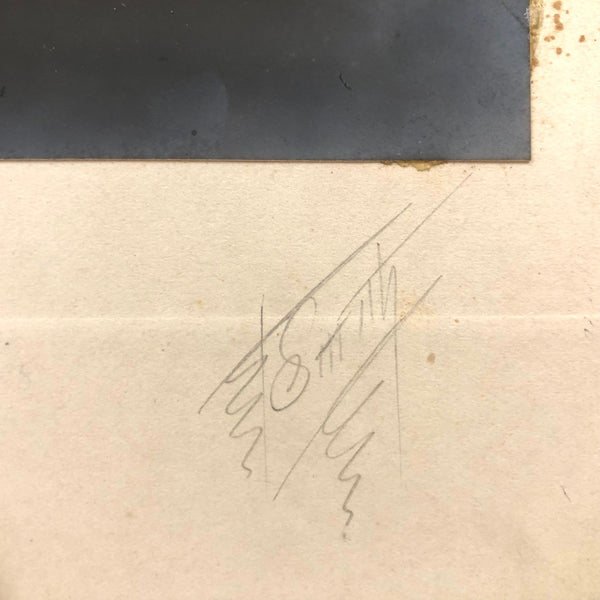 7 9/16 x 9 1/2 photo; 10 x 14 as mounted. Good condition, hand-signed what looks like Smith at lower right. Just a bit of rippling to the photo upon close inspection, but not evident when looking at it.