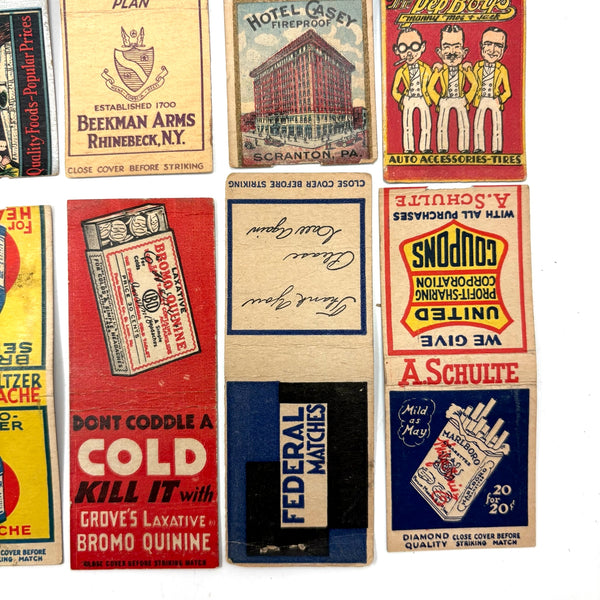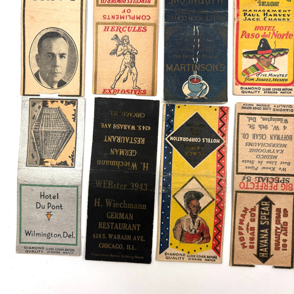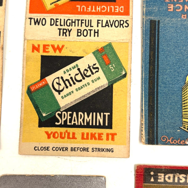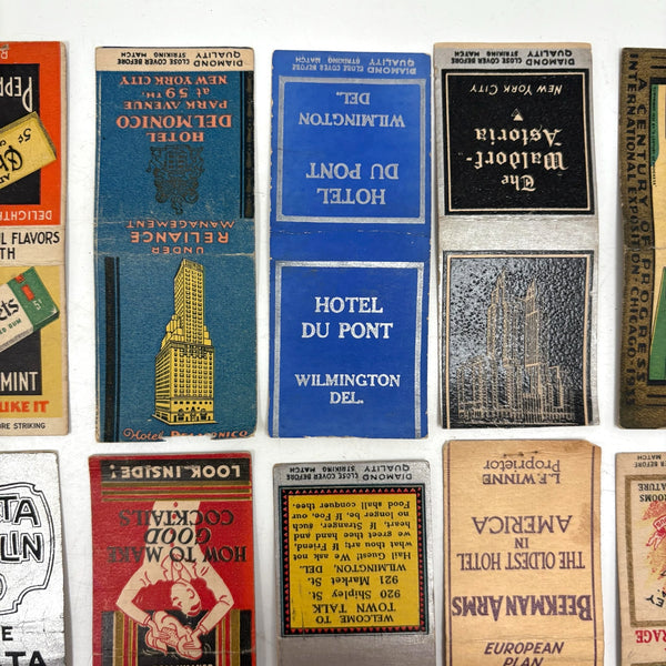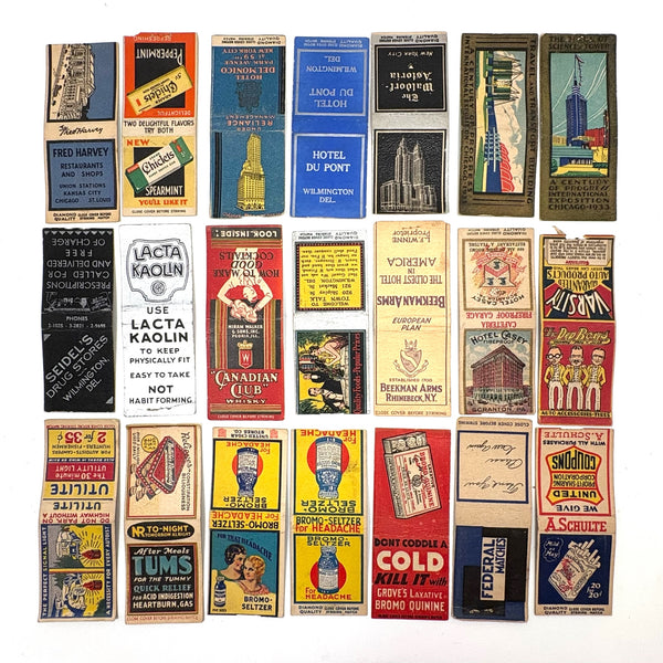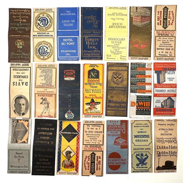 These were fun to find, and more fun to spend a little time with, telling lots of stories-- about America, and graphic design, and about the life and travels of the person who built this collection! Oh, the days when matchbooks were everywhere. I especially love seeing the ones for Baby Ruth and Chicklets and Doublemint Gum, as well as the Waldorf Astoria, Beekman Arms, etc. Also a number from the Chicago World's Fair. A bit of quick searching suggests some of these may be quite collectible but I'm all about the collection. Mostly late 1920s/early 30s to 1940s it appears to me.