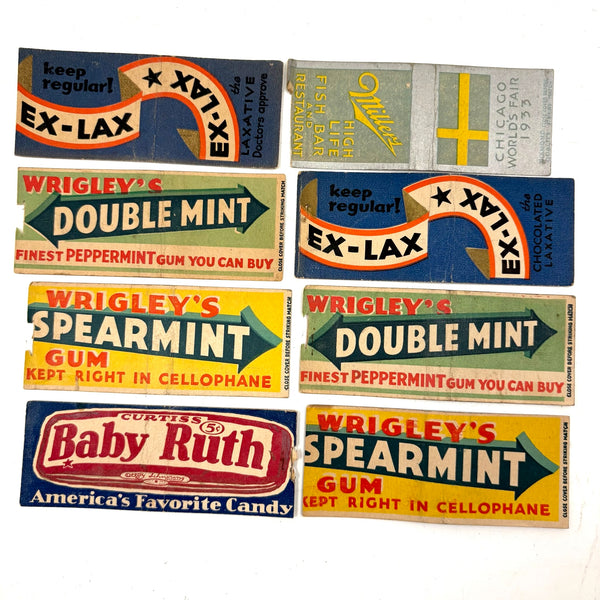 Match book sized! Baby Ruth approx 4" x 1 1/2". All pictured included, with dupes of some for a total of about 90.