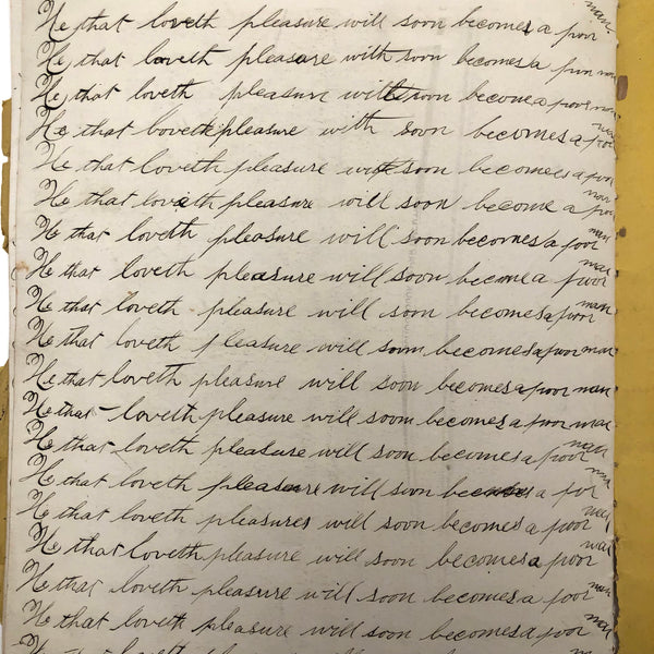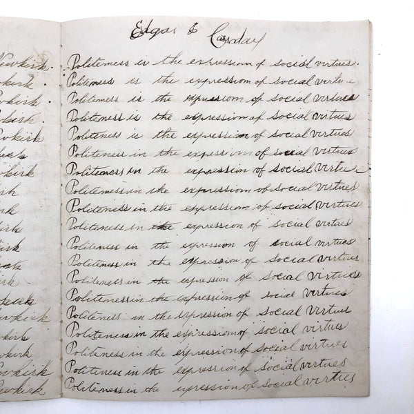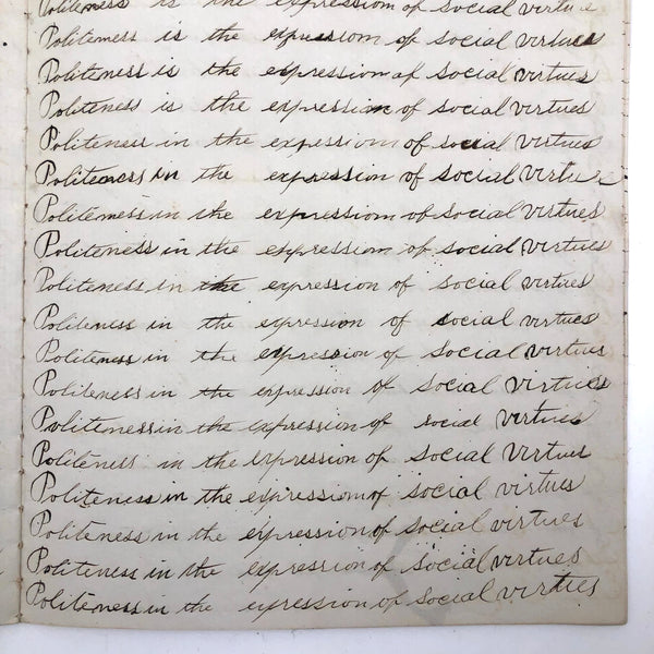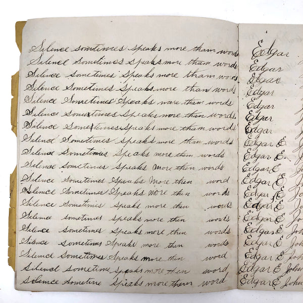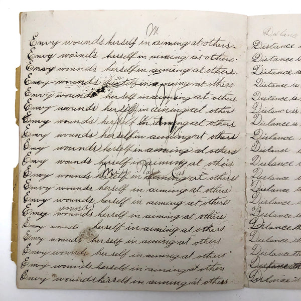 Without a Friend The World is a Wilderness, Late 19th C. Penmanship Practice Notebook