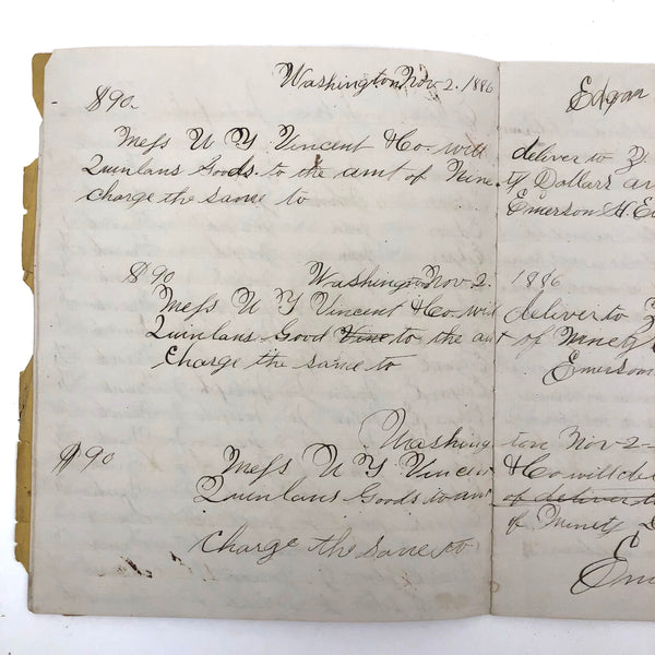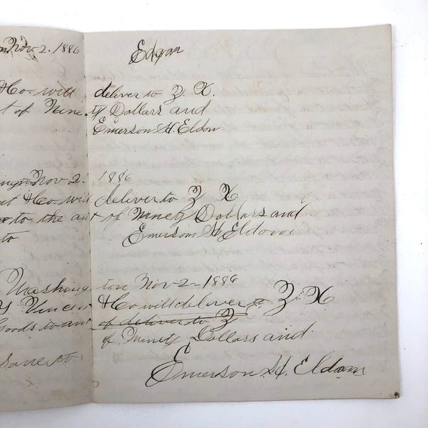 8 1/4" x 7". 9 pages, filled front and back, plus paper cover. Good overall condition, with ink clear and strong.