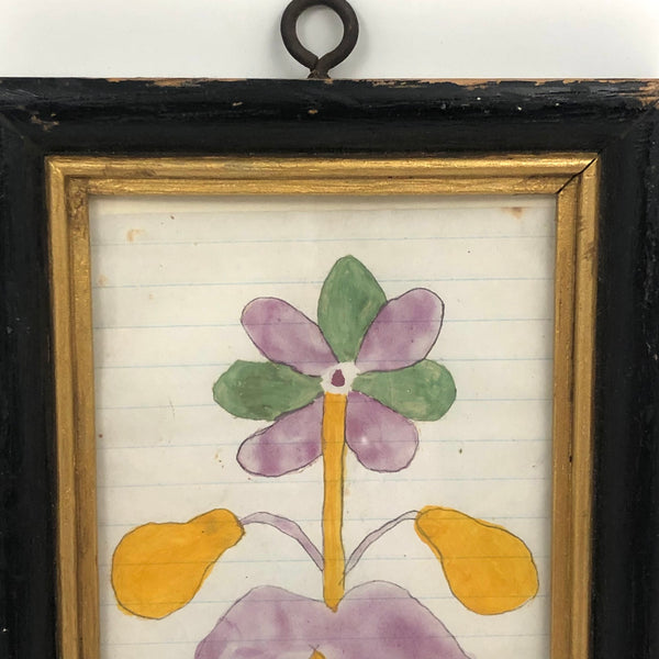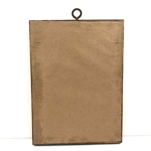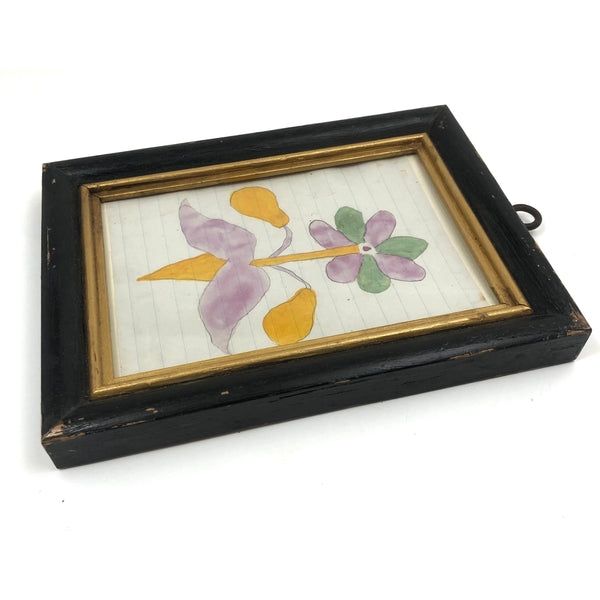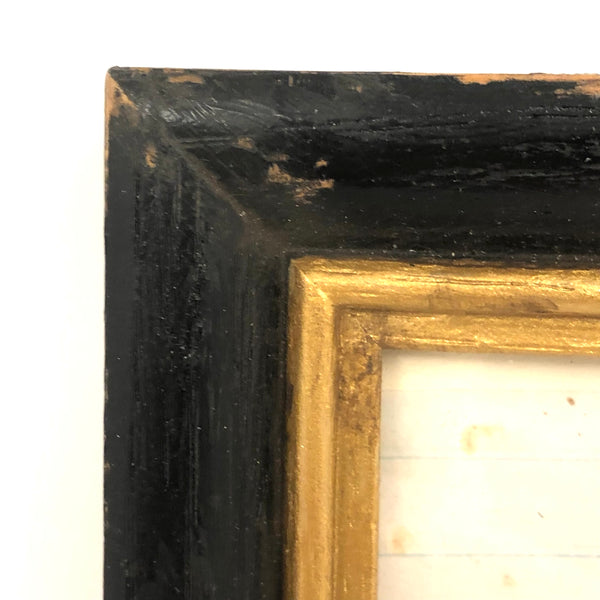 Wonderfully framed, as found, under glass in black and gold painted antique frame: 7 3/8" x 5 7/16". Not including hanging loop at top.