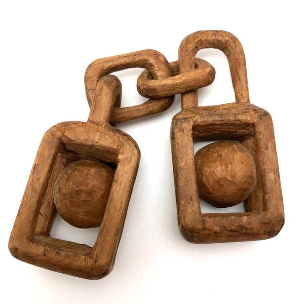 This is one of a a number of old pine carved whimsies I purchased together and believe were all made by one American carver, first half of the 20th century I believe. Skillfully done but chunky in form, with a great warm patina to the dry wood, and all carved from one piece of wood with no notable chips, cracks or splits. Very nice.