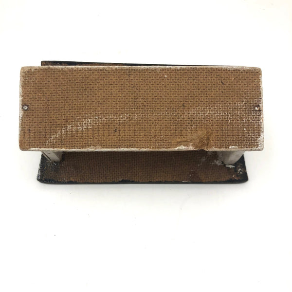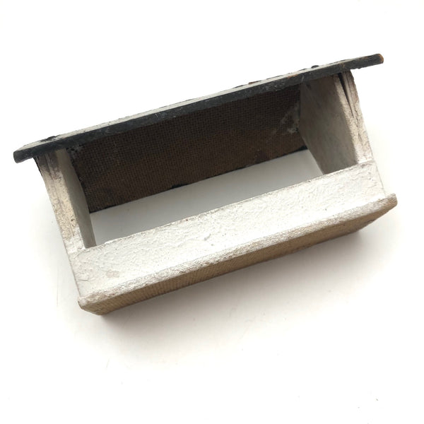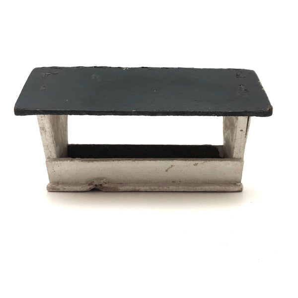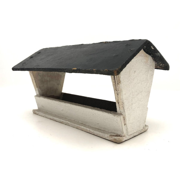 Just a little thing, probably constructed along with a tabletop farmhouse, or perhaps as part of a model train set. I guess it could be a feeding trough, or a shelter into which a few wooden animals might climb and rest--which is what I might do with it, though I like it a lot just on its own. Good clean lines, and nice row of nails showing through at either end of the black painted roof.