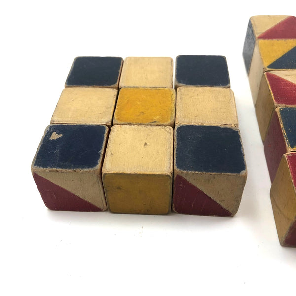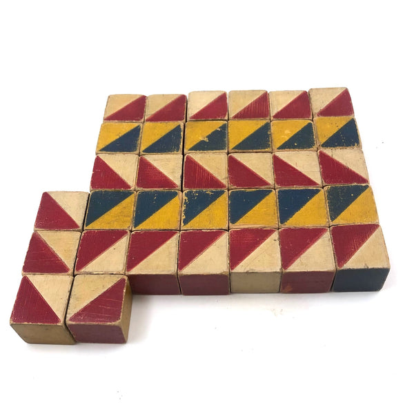1 1/16" cubes and in good much used condition, wear to the paint as evident, but no losses to the wood.